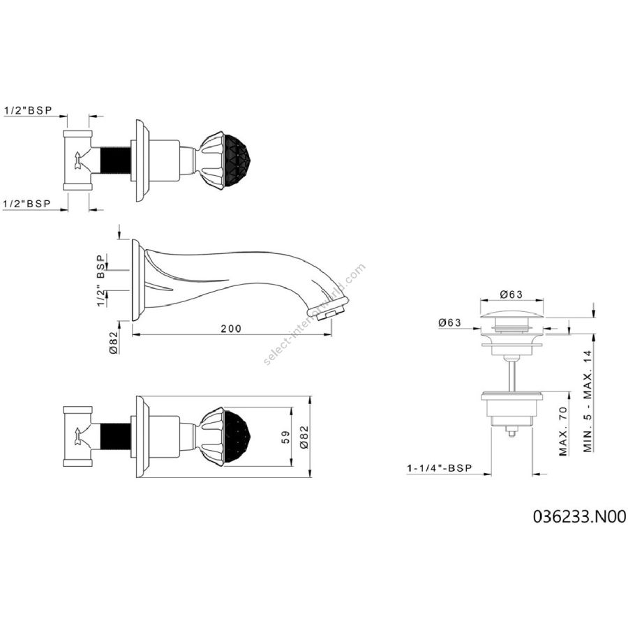 - Bronces Mestre / Washbasin Fittings / Three holes wall basin set with Swavoski black crystal 036233.N00.50