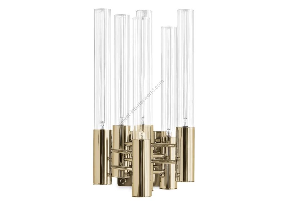 The Burj Wall Lamp brings a magical sensation to every space with high-end materials such as gold-plated brass and crystal glass. It transmits elegance and sophistication to any interior decor. The delicate, handmade crystal glass tubes make it a modern lighting addition to any interior decor