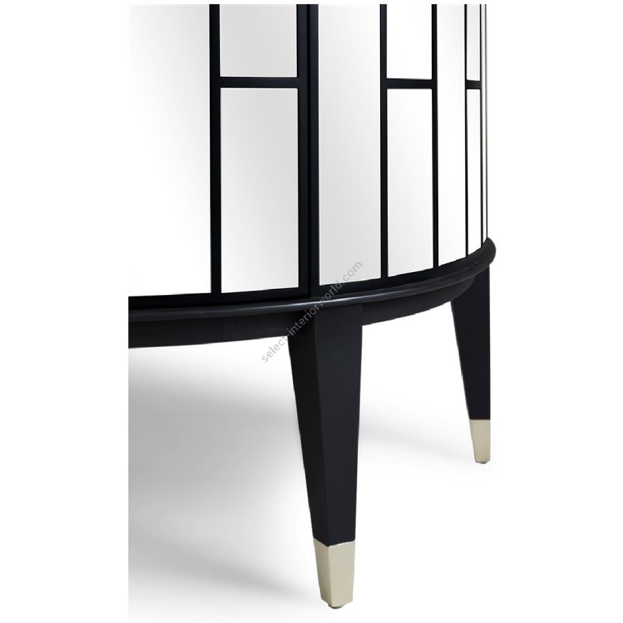 Addition to the “The Dorchester” family (85-0057 cabinet), this new version with metal finish tipped feet has the same outer dimensions as 85-0057 but interiors for bar cabinet.