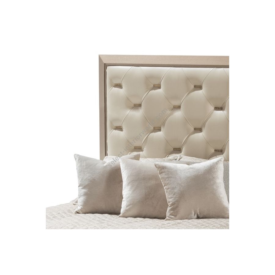 This elegant bed stands out for the height of its back and the quilted detail in the headboard. It has decorative bronze veneers that give it greater sophistication. It gives a feeling of greater spaciousness in rooms.
