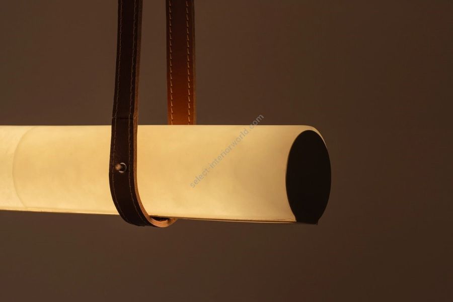 Crafted from alabaster and suspended with leather straps, The Line brings warmth, texture, and sophistication to any interior. Made with noble materials and a design refined down to the smallest detail, it transforms the atmosphere with a light that conveys elegance and timeless balance.