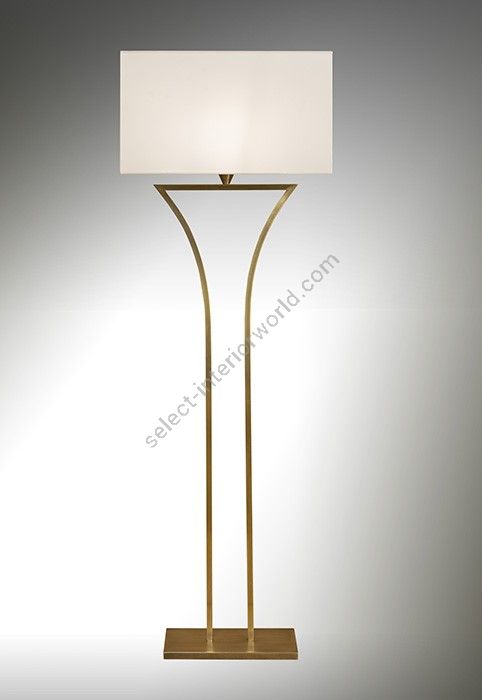 Floor lamp made in brass It is made with two square tubes forming harmonious curbs on a rectangular base This floor lamp with an elegant design nicely decorates a living room, a bedroom or an office Available in black or matt gold patina Presented rectangular shade in white cream chintz (see other available shapes and colors)