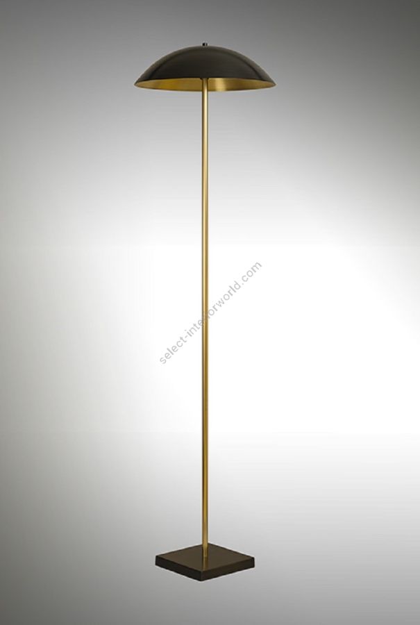 Floor lamp made in brass. Made with a round tube overcame by a cup, and on a square base. This art deco lamp gives a touch of vintage elegance to your interior. Available in black or bicolor (black andmatt gold) patina