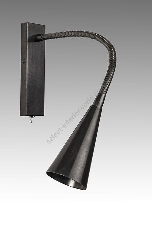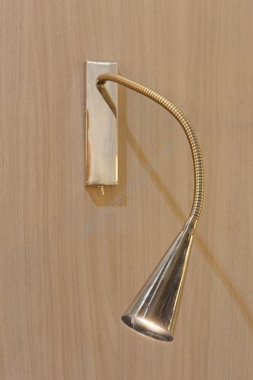 Wall light with Led light made in brass. Made with a 30cm flex on an embedded rectangular base. This reading wall light gives a sober and elegant design, and an efficient direct light. Available in black or matt gold patina, and in nickel or brushed nickel.