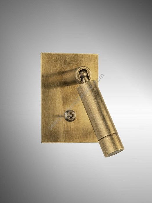 Wall light with Led light made in brass. Made with a led head fixed with a rotating kneecap, on an embedded rectangular plate with switch. This reading wall light gives a sober and elegant design, and an efficient direct light. Available in black or matt gold patina, and in nickel or brushed nickel.