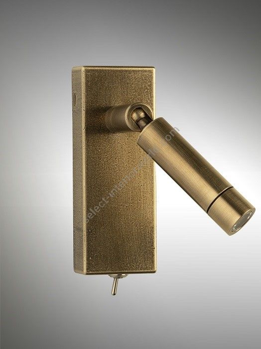 Wall light with Led light made in brass. Made with a led head fixed with a rotating kneecap, on a rectangular base with switch. This reading wall light gives a sober and elegant design, and an efficient direct light. Available in black or matt gold patina, and in nickel or brushed nickel.