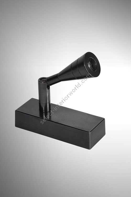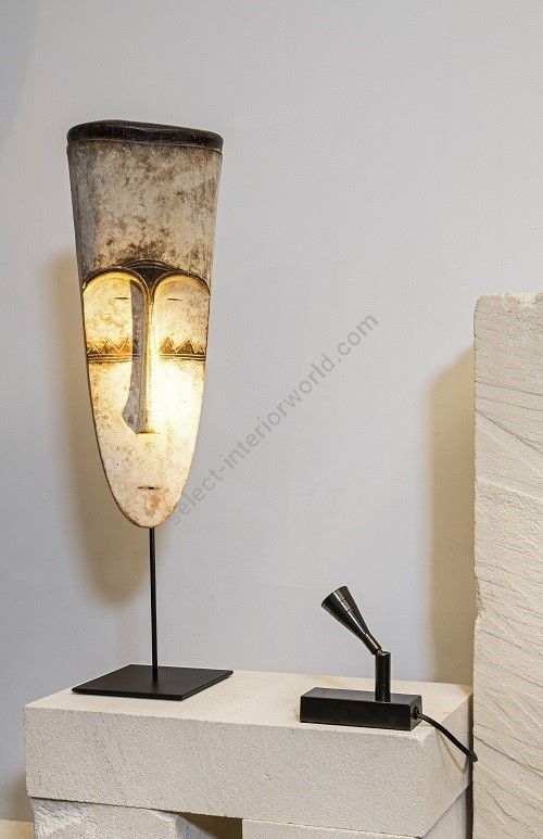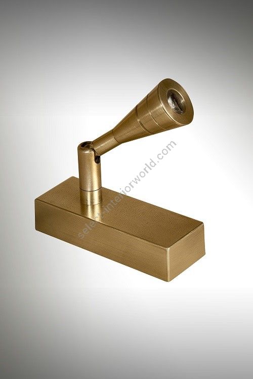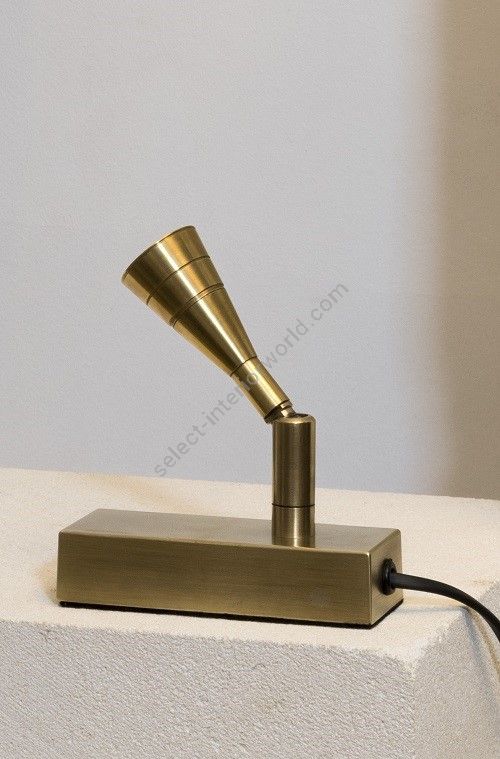 Table spot made in brass It is made with a conic led light on a rectangular base This table spot with a sober and elegant design highlights a painting, a sculpture, a furniture Available in black or matt gold patina.