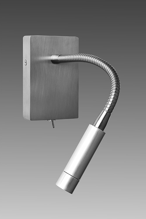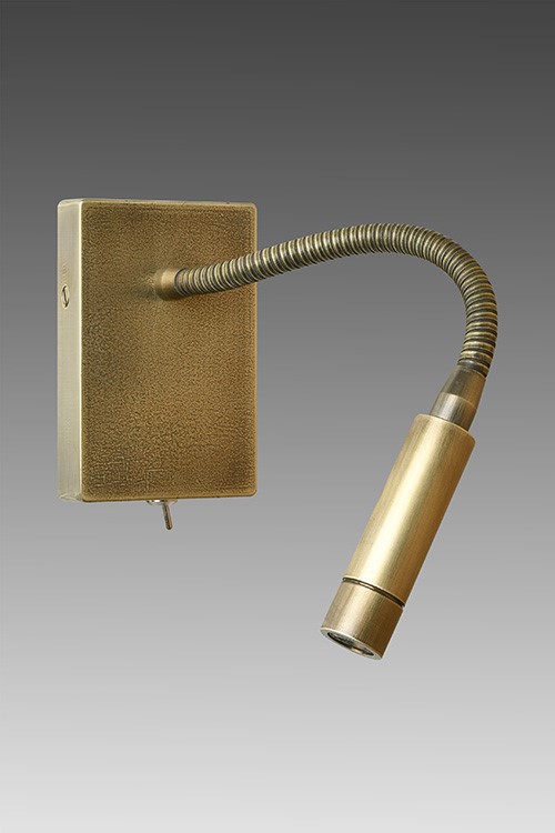 Wall light with Led light made in brass. Made with a 30cm flex on a rectangular base with switch. This reading wall light gives a sober and elegant design, and an efficient direct light. Available in black or matt gold patina, and in nickel or brushed nickel