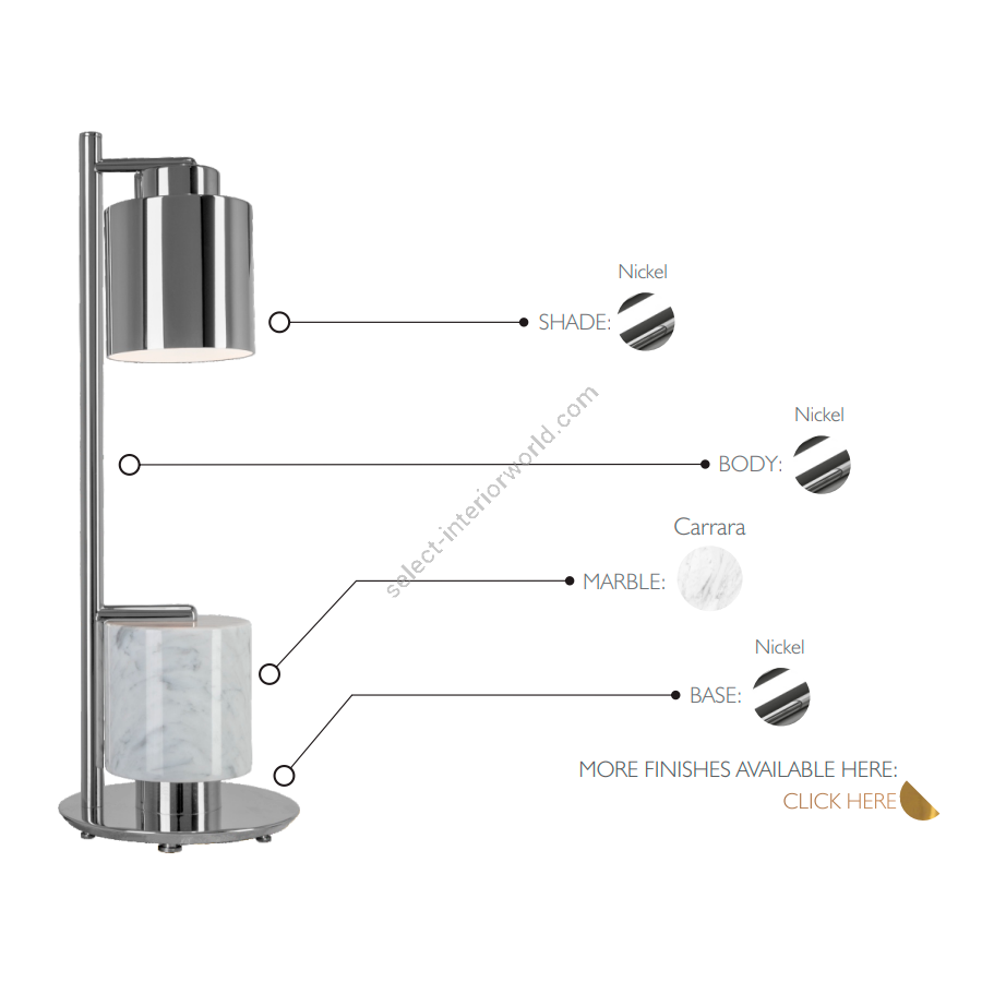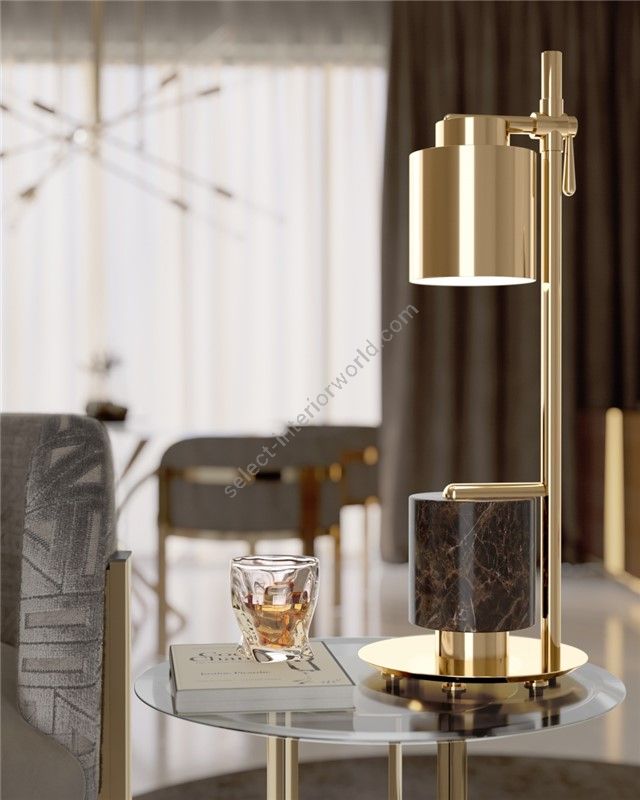 Chantel’s structure is made of glitzy brass, paired with a cylindrical estremoz white marble. The exceptionally elegant and creative table lamp makes it easy to uplift the interior design with a new aesthetic in decorative lighting.
