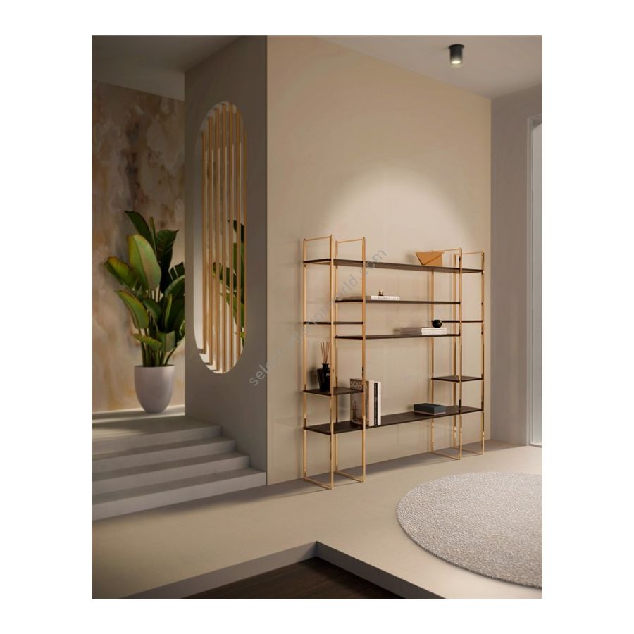 The stunning combo of wood and brass in the Gaya bookcase goes beyond the limits of traditional perception in furniture design and brings a new vision – a fusion of state-of-the-art smart elegance with a playful geometry twist. All the ornamental features are handcrafted from the finest brass and styled with selected wood by our professional artisans. Gaya bookshelf is a bespoke accessory to complement a set-up of a spacious living room, bedroom, or study, as a shelf full of books and decorative objects provides instant appeal to anyroom.