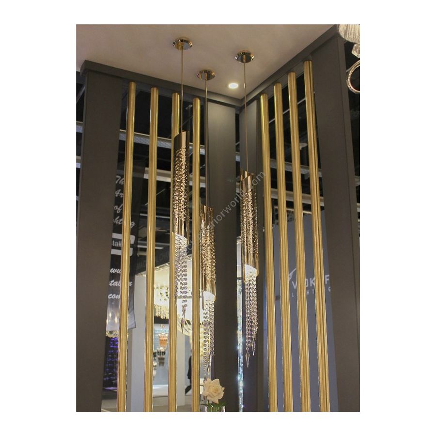 The 24k gold plated brass tubes are hammered by the hands of experienced craftsmen and decorated with delicate Crystals carefully assembled one by one by lighting manufacturers. This fact allied to the possibility of customizing the light in numerous configurations confers an exclusive personality to each project.