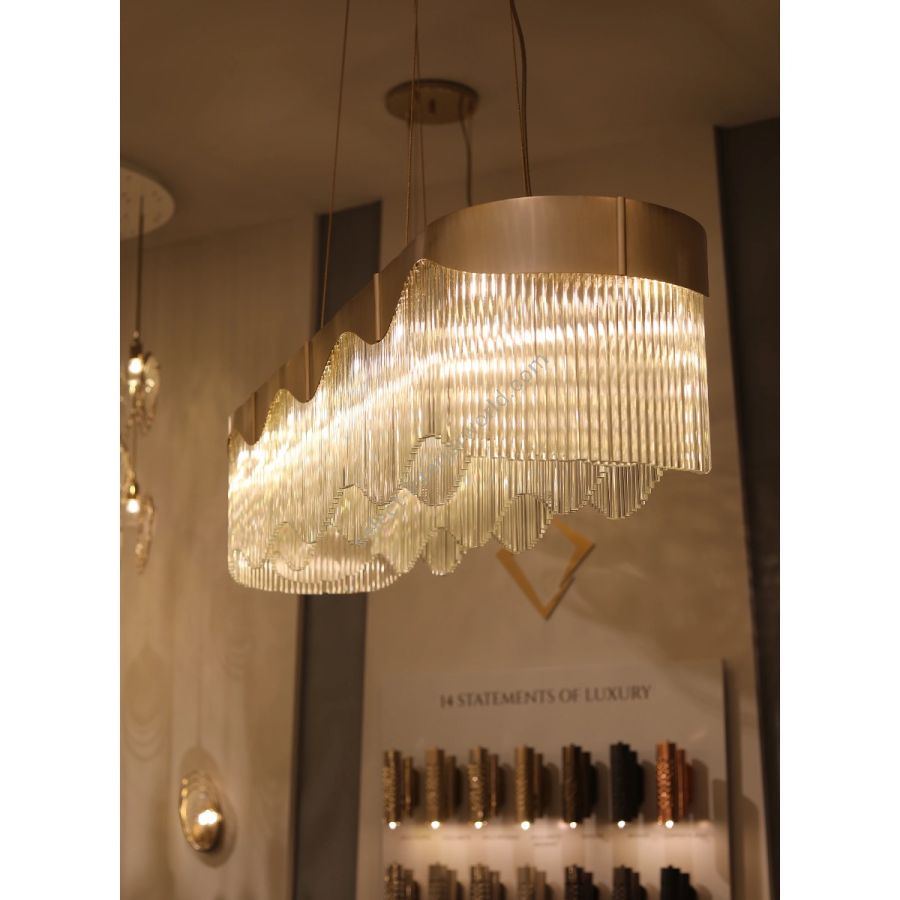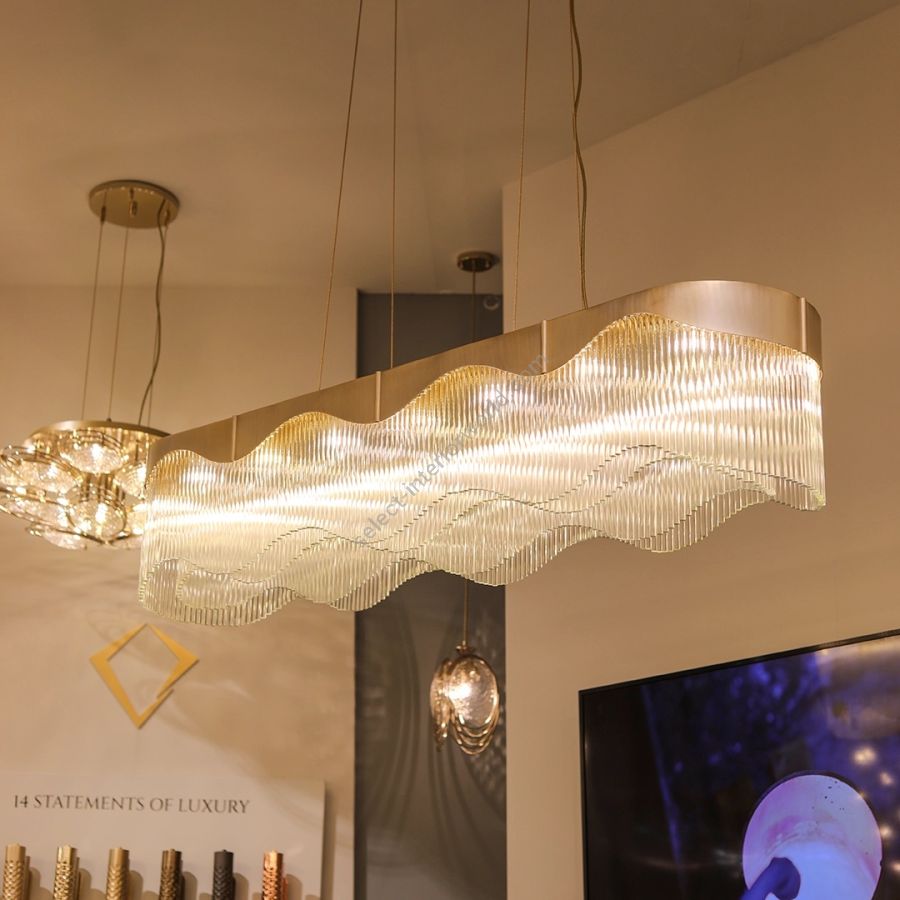 This lighting masterpiece redefines elegance through its mesmerizing design and customizable features. Inspired by the vision of a discerning client, this abstract chandelier captures the essence of fluidity with its intricate curves and waves that seem to dance in the air.