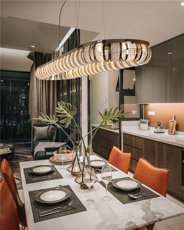The Leviev handmade suspension was designed to be a stylish solution for a living room, dining room or hallway, it’s a contemporary lighting fixture with accents of Hollywood Glam and Mid-Century Modern interior styles, a great addition to complete the décor with elegance and glamour. This snooker version of Leviev is a signature adaptation of the original design, with handmade brass-work mixed up with delicate crystals, by Castro Lighting's experienced and passionate craftsman.