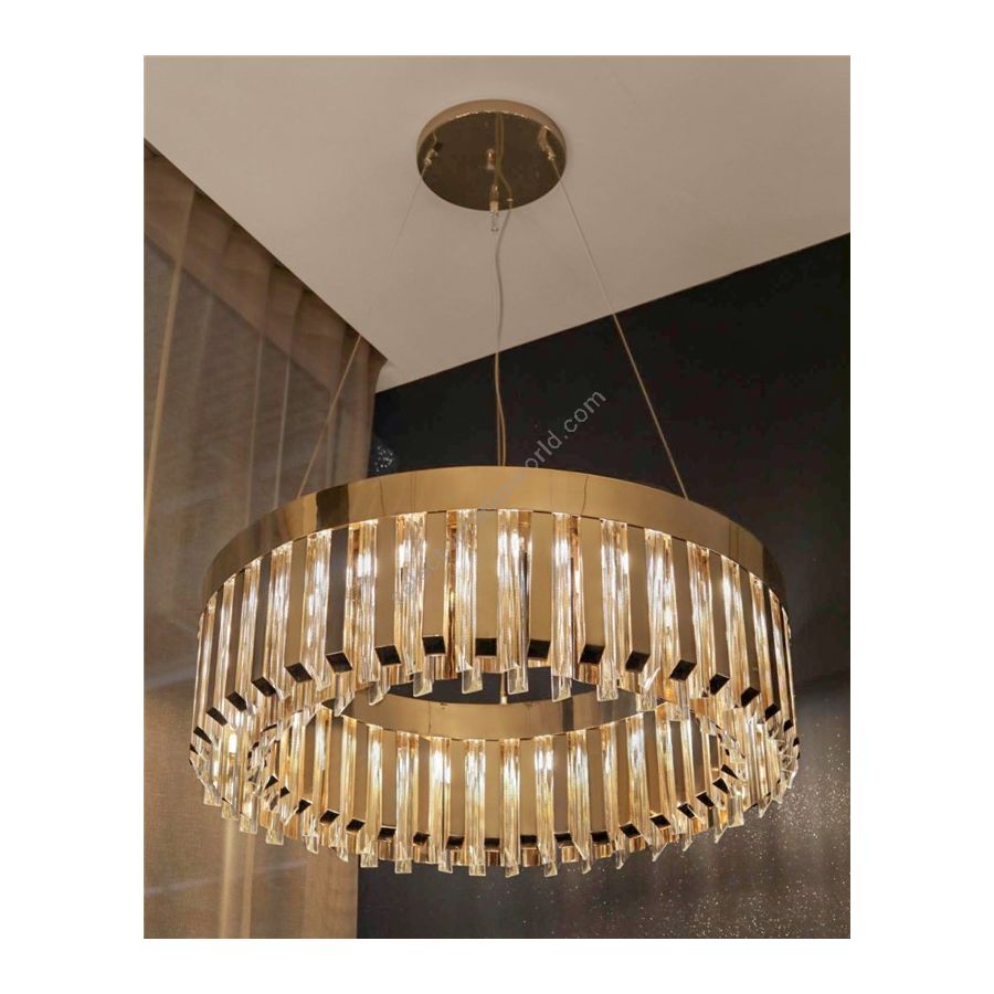 The Skylar Suspension is a stunning glass and brass chandelier that is a “one in a million”. Designed to impress, it brings a special allure and refined lighting detail to the most exquisite interiors. The artistically fulfilled lighting fixture is made of brass with a gold-plated finish, visually intercalated with mesmerizing glass.