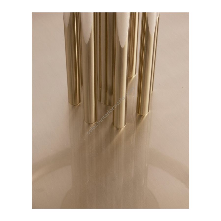 This bar stool explores the concept of projection as the gold plated brass tubes fill the base and the top of the pieces, displayed as if they were projecting side to side. The irregular height of the tubes leads to an unusual form that will stand out in the most exquisite interiors.
