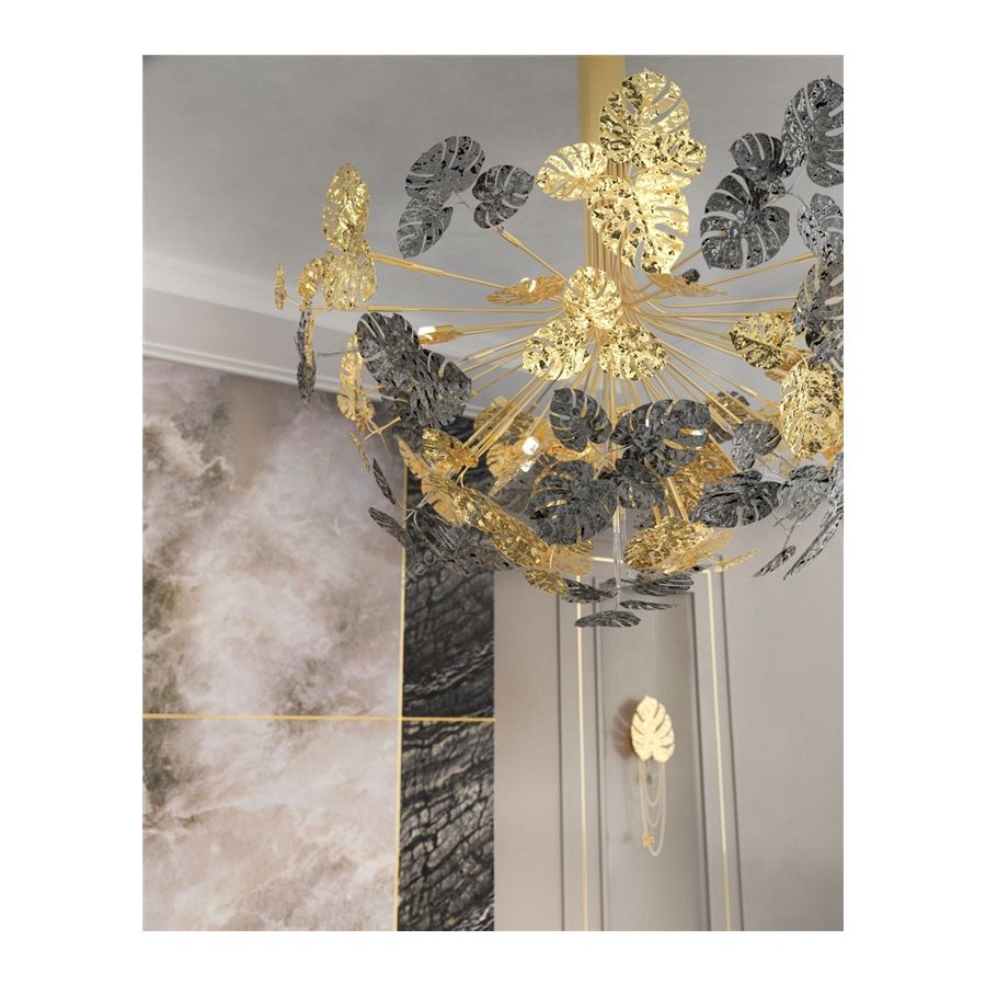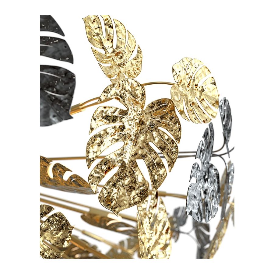 The Rainforest elegant design is unparalleled in the refinement and grace it represents. The gold-plated brass and nickel finishes masterfully implemeted in bouquet chandelier leaves- applied by hand - brings a delicate charisma that resembles nature in full bloom.