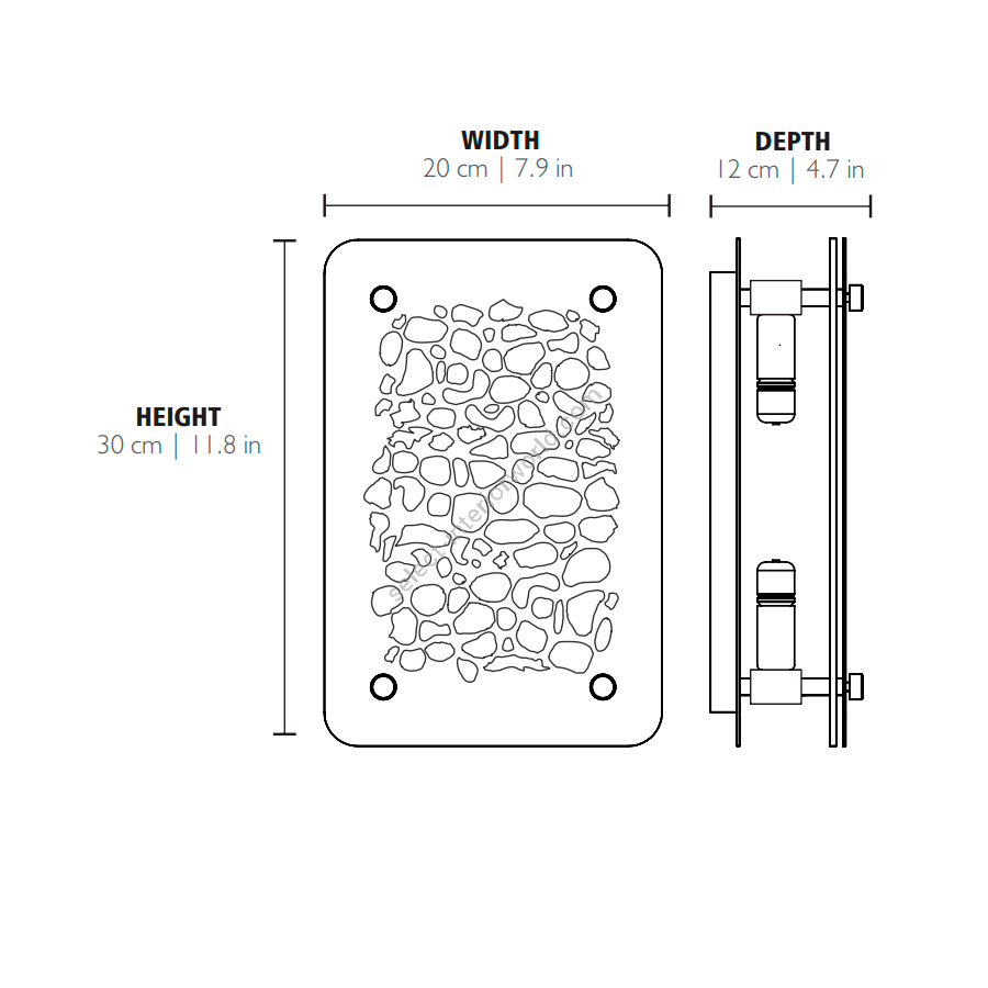 | Dimensions (HxWxD): | cm: 30x12x20 / inch: 11.81"x4.72"x7.87" |