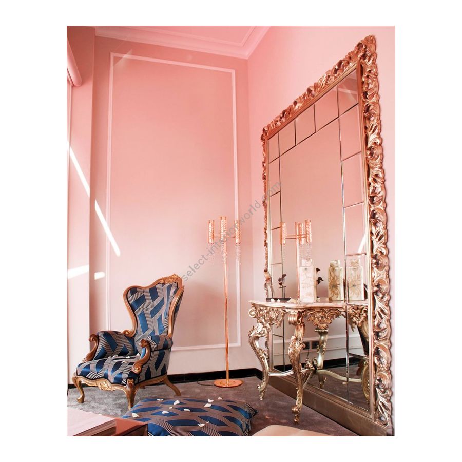 This floor lamp is ideal for luxurious lounge areas and living rooms, fitting in a vast variety of decors. It’s a masterpiece with an extravagant shape, capable of transforming every space into an exquisite scenery.