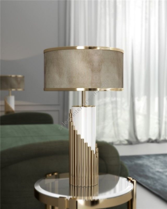This piece was conceived to be distinctive and stand out for its design, becoming the perfect fit for curated interiors that combine a diversity of styles. This elegant table lamp features a white lacquered structure with gold plated brass tubes that give the design a whole exclusive and deluxe look, setting another level by its distinctive appearance. This recipe of rich materials and sleek lines inspired by art-deco architecture make the Streamline table lamp desirable.