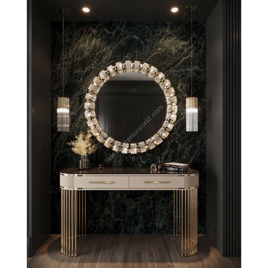 The dazzling yet delicate Leviev Mirror is a modern blend of refinement and simplicity, with a pinch of classy details, accentuated by the sparkling elegance that glares from miles away. Every detail has been meticulously crafted to make this mirror achieve the epitome of luxury. A statement piece gifted with a special allure that confers an ostentatious mindset to the most exquisite interiors.