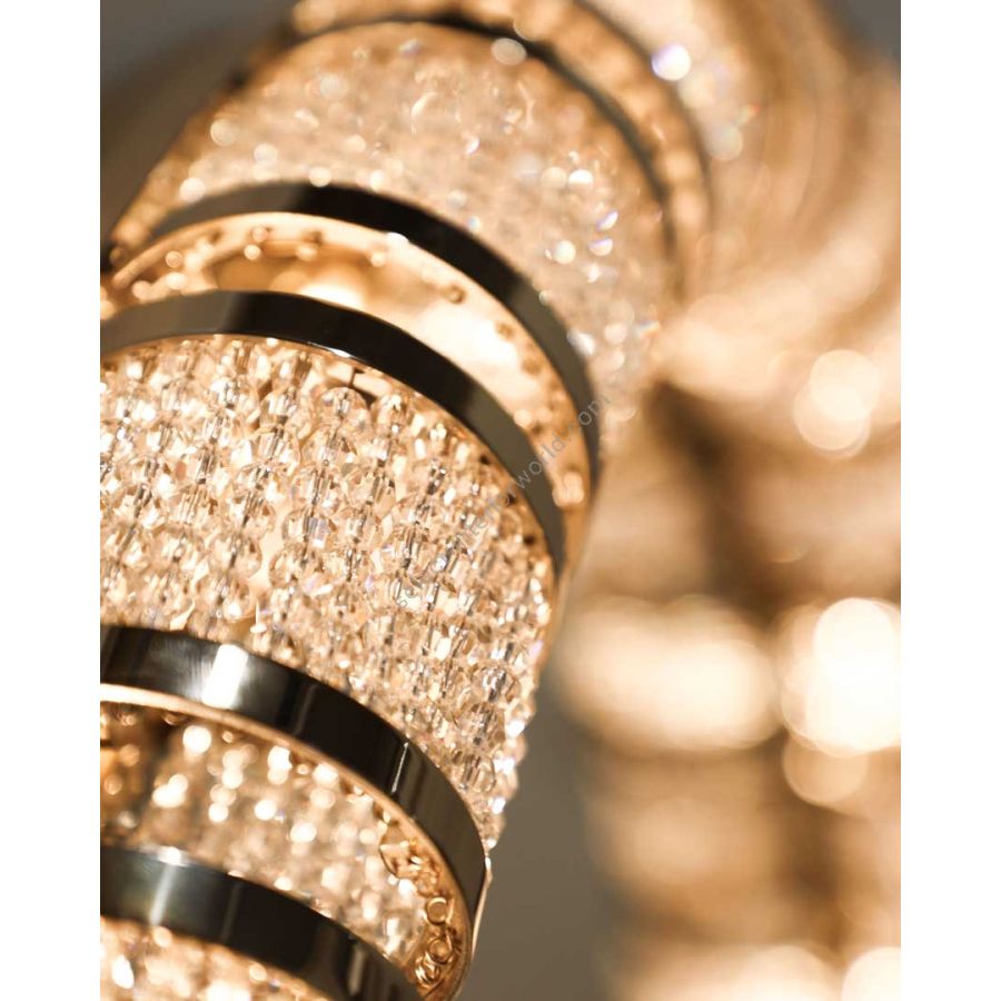 A dimpled bending-round shape coupled with delicate crystals reveals a balance of exquisite design and precision handcrafting, giving the interior a distinctive accent of comfort and effortless luxury. Its gold-plated brass structure comes to life through the embellishment of glowing crystal beads.