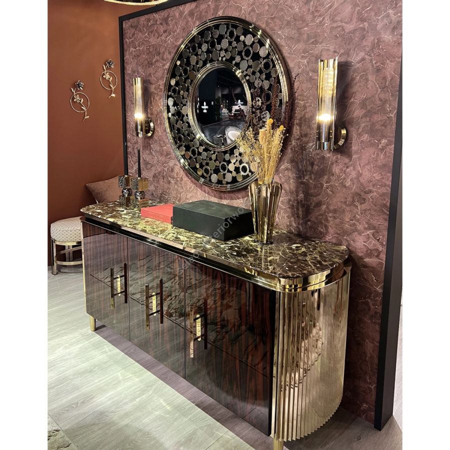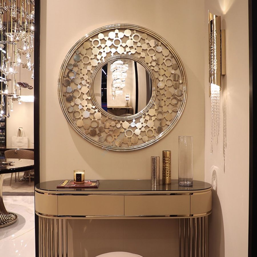 The Art Deco-inspired mirror is a truly luxurious piece that blends shades of elegance and whispers refinement. Unrivaled lavishness that effortlessly complements entrances, hallways, living rooms, and every other space your imagination allows.