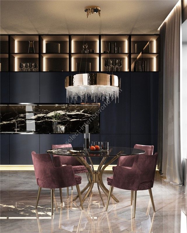 The combination of the noble materials used on this piece, the 24k gold brass legs and the top glass plate, make this piece unique and extremely luxurious. With a delicate nature, Haring is the perfect decorative piece to place in a luxurious dining room, giving an exclusive touch to the surrounding area. Surrender to this gorgeous statement piece as it will make any room complete.