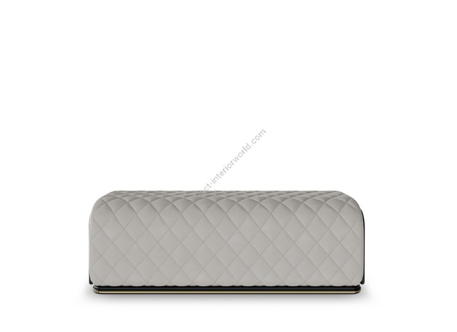 The Charla Ottoman from the iconic Charla Collection is a luxurious upholstery solution for any interior decor style from a modern hallway to a trendy bedroom. Made with the finest materials, such as polished brass, black lacquer, and leather, it exudes timeless elegance with a modern touch.