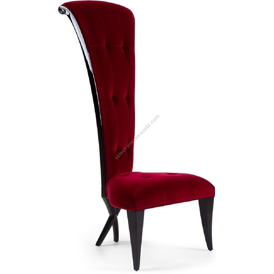 This tall, stunning upholstered piece, bears claim to Christopher's signature style, creating the unexpected, in this case with a tight corset waistline, and patented Chris-cross legs.