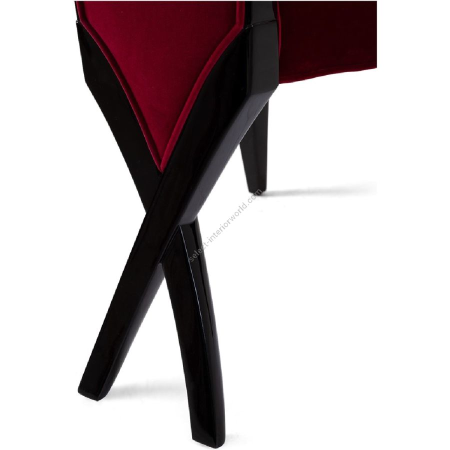 Doweled mortise and tenon frame in solid Mahogany from certified source. Hand-Carved details. Signature 'Chris-Cross' patented legs. Saber legs. Sag free Sinuous springs. Available in a selection of finishes. For residential use only. Commercial use is classified as Special Order Design (SOD), and alternative materials may be required. Contact us for details.