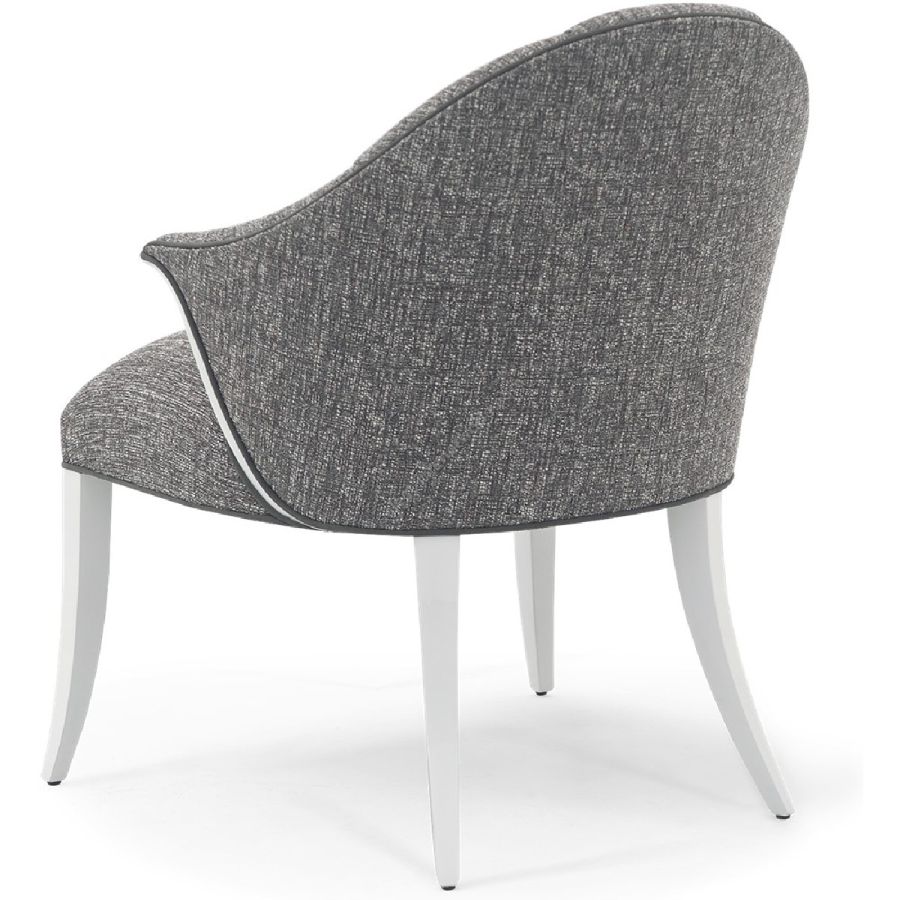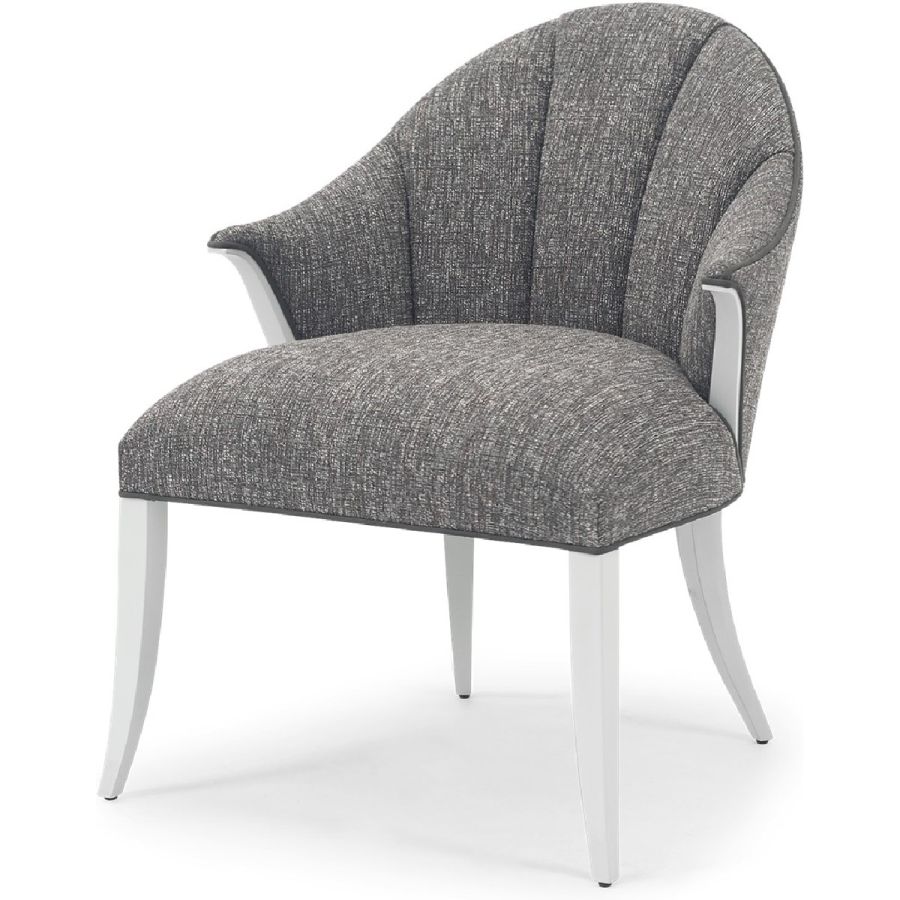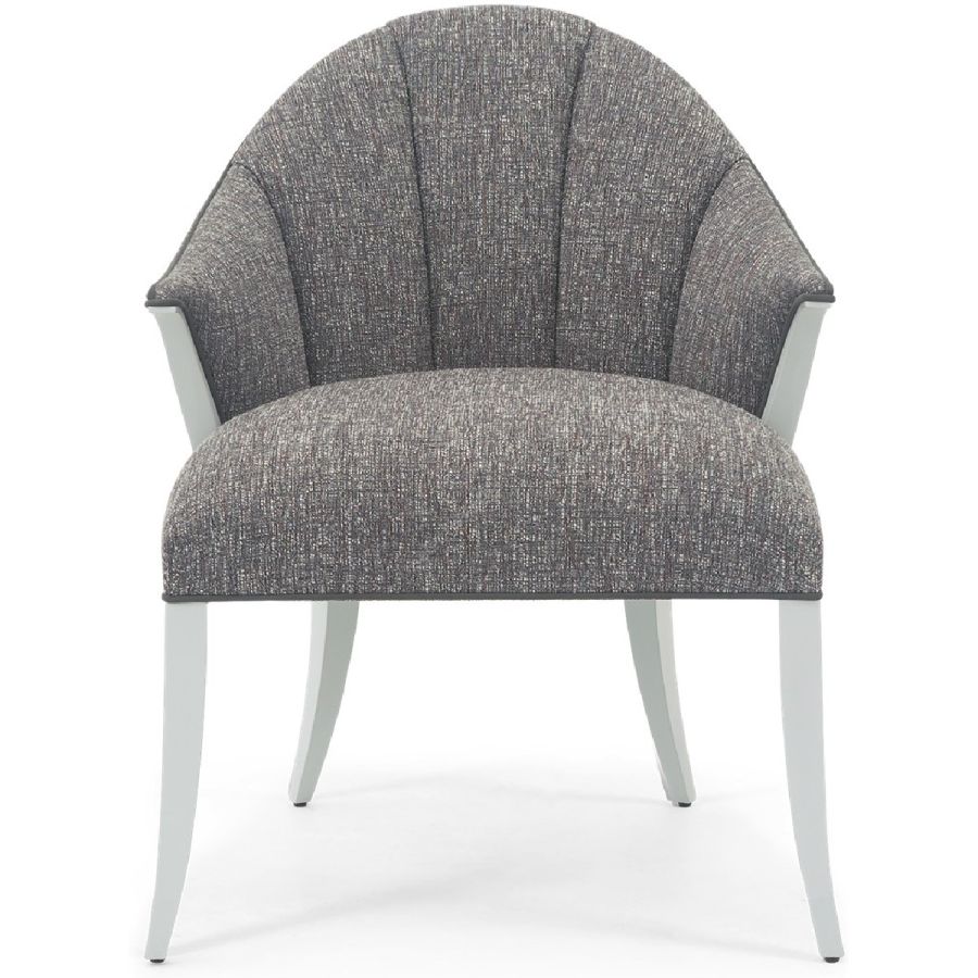 A beautiful and versatile upholstered piece for use as either a dining chair or as an occasional piece. The carved side scroll is pure Christopher Guy.