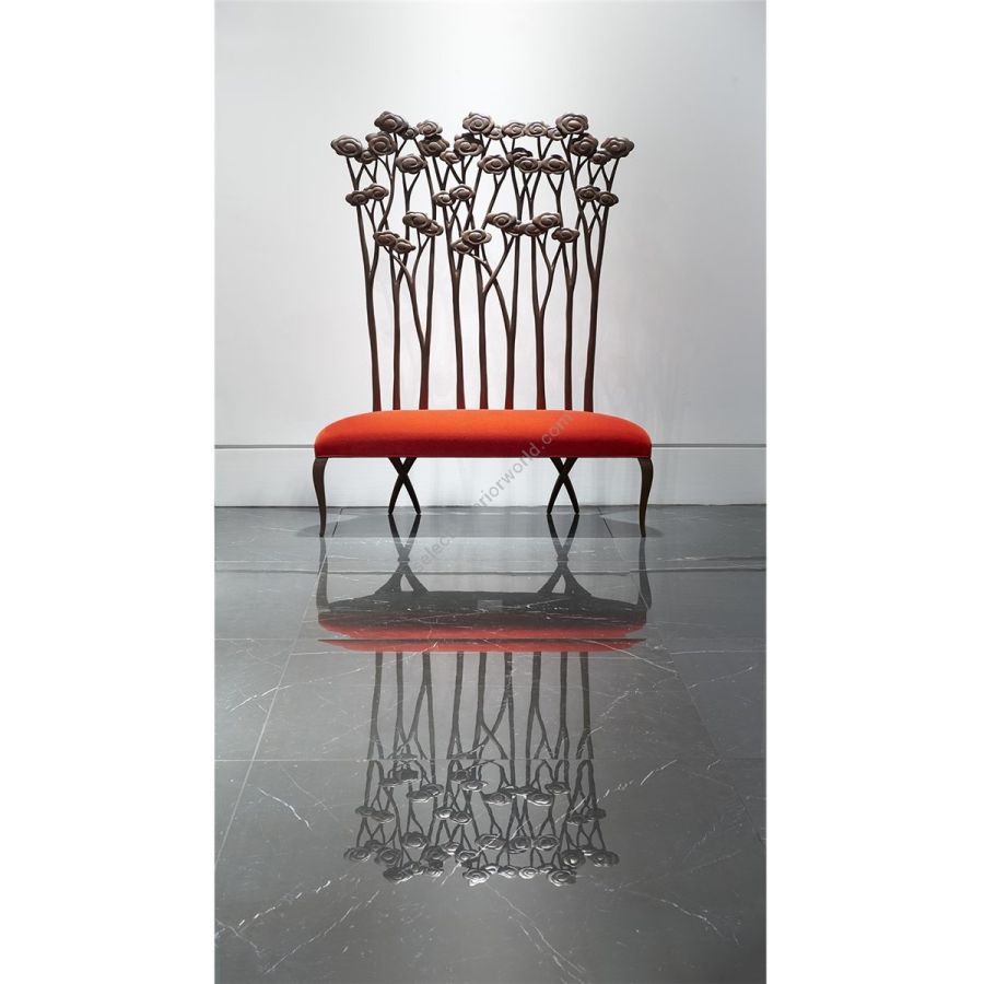 As an emblem of longevity and purity, Coco Chanel was captivated by the allure of the Fleur de Camélia. Carved from solid mahogany, Christopher designed this magnificent high-back bench to pay homage to the Mademoiselle legacy.