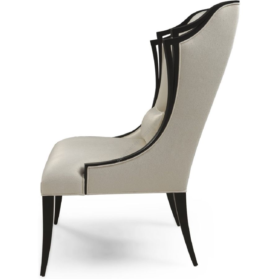An impressive winged back occasional or dining chair, with carved pierced details and removable lap pillow. A timeless Christopher Guy signature piece.