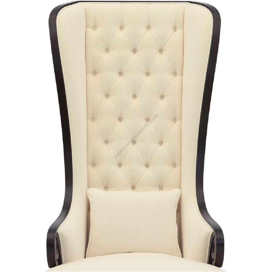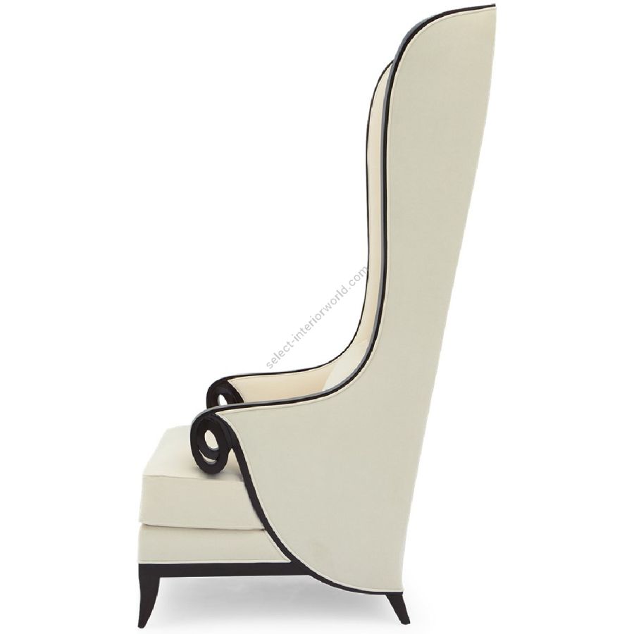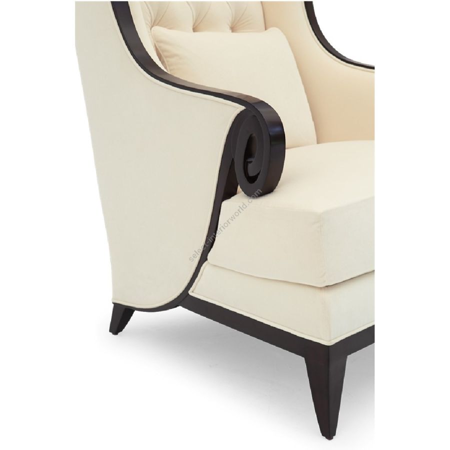 The grand scale of this magnificent Christopher Guy high-back tufted wing chair is in little doubt with its featured volute scroll arm details.