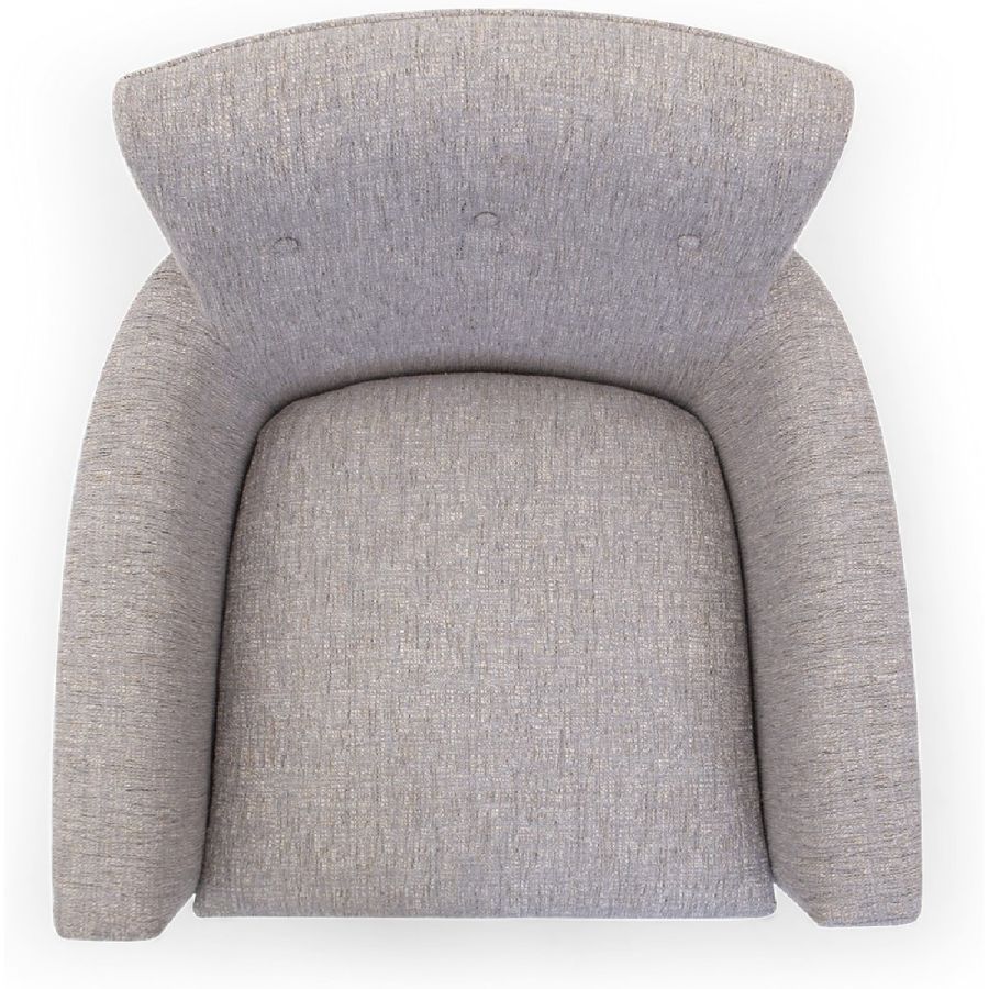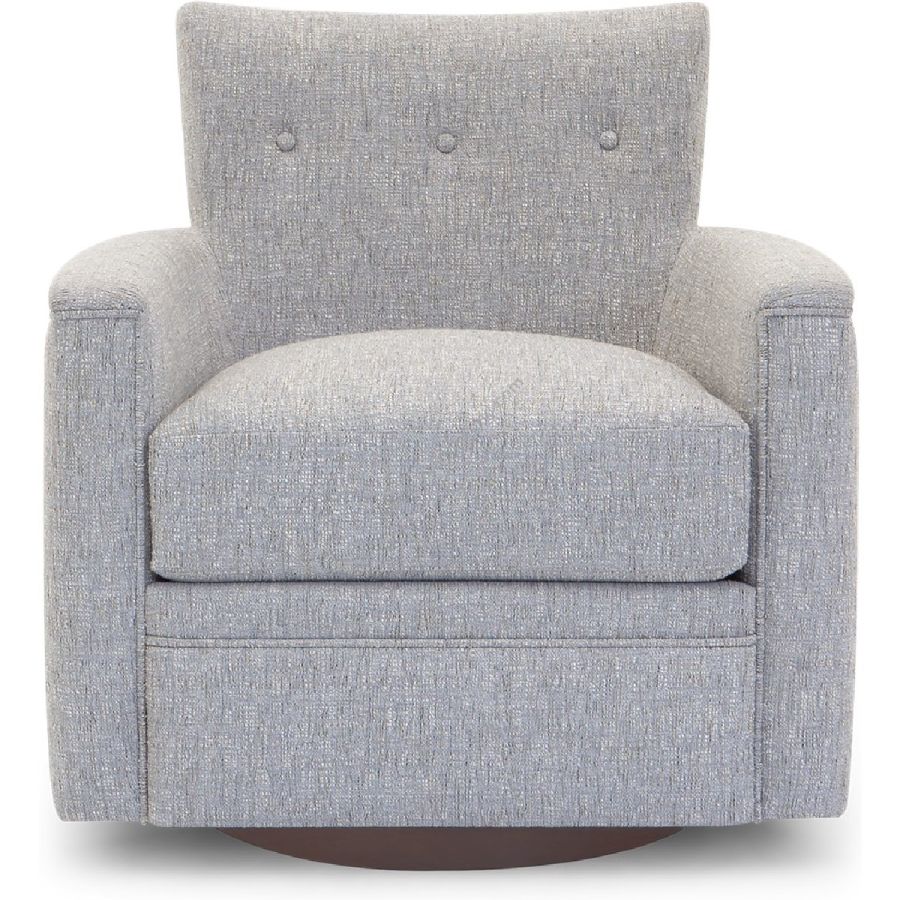 Eight-way hand tied spring base, with pocket coil seat cushions encased in high-resilient fill and feathered down jacket. Single row buttoned tufting oozing a modern elegance. Auto-return swivel base. For residential use only. Commercial use is classified as Special Order Design (SOD), and alternative materials may be required. Contact us for details.