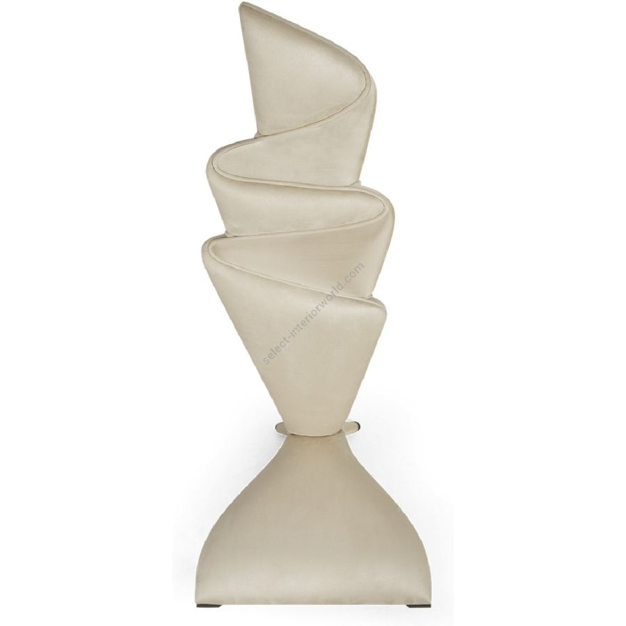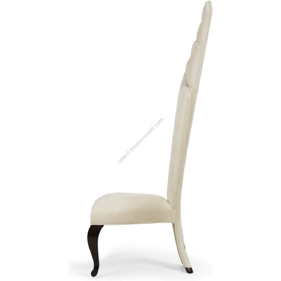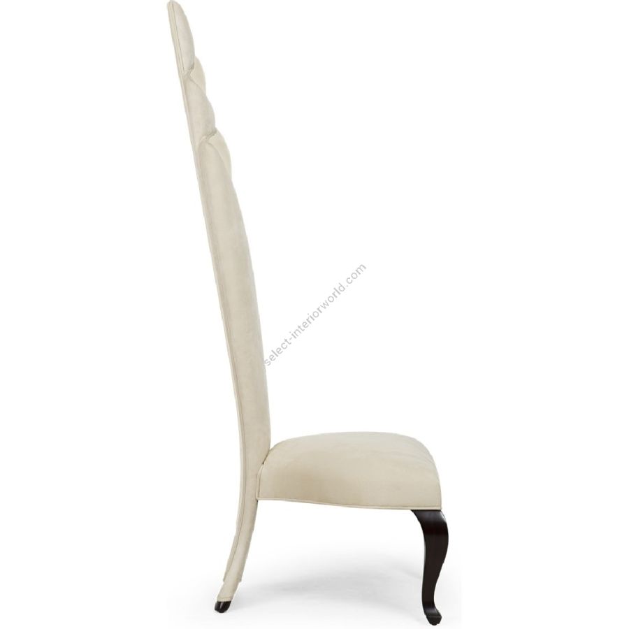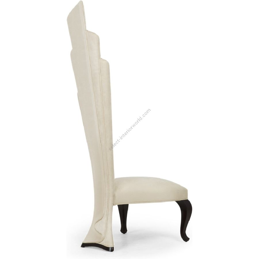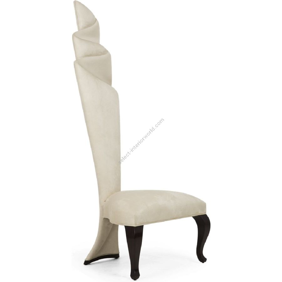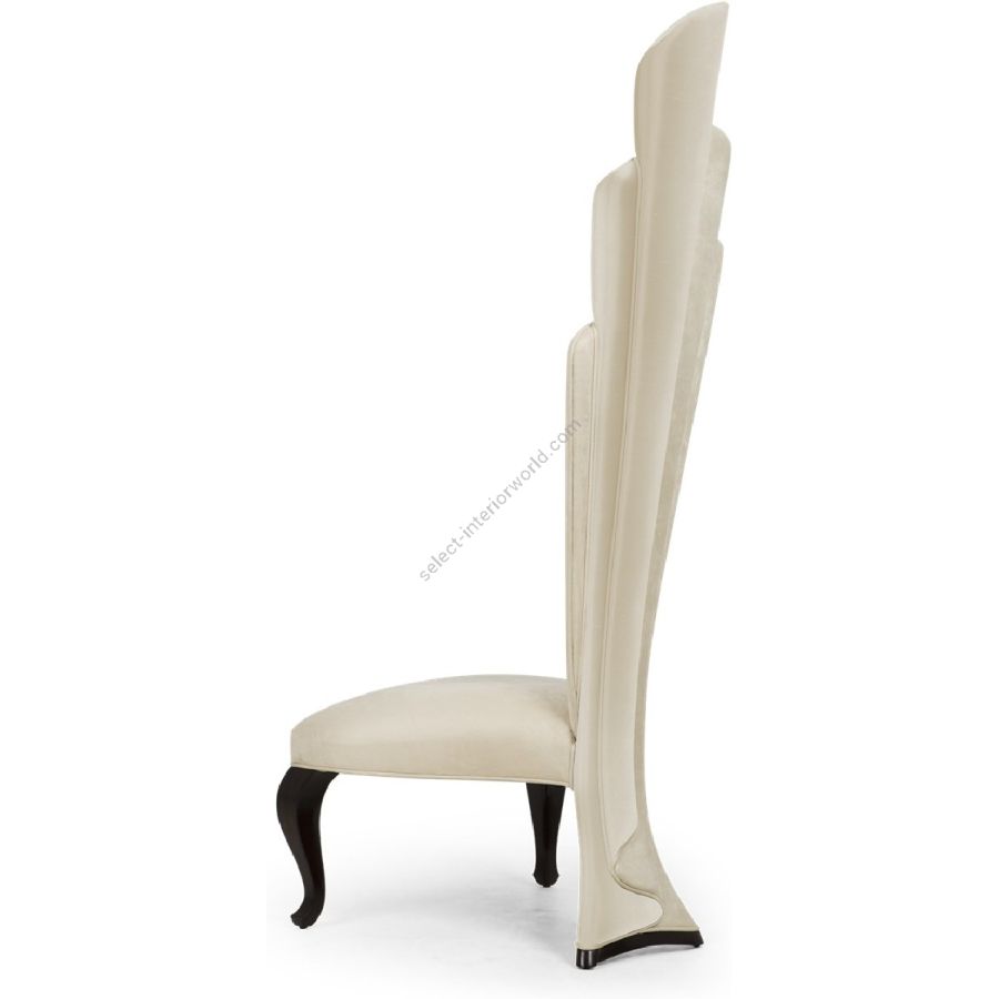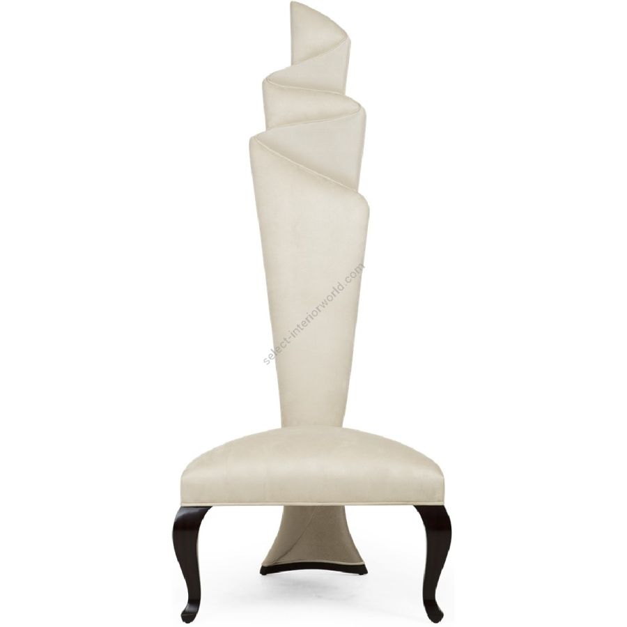 This masterly upholstered torch-back chair is a statement of form reminiscent of a finely crafted latin fan.