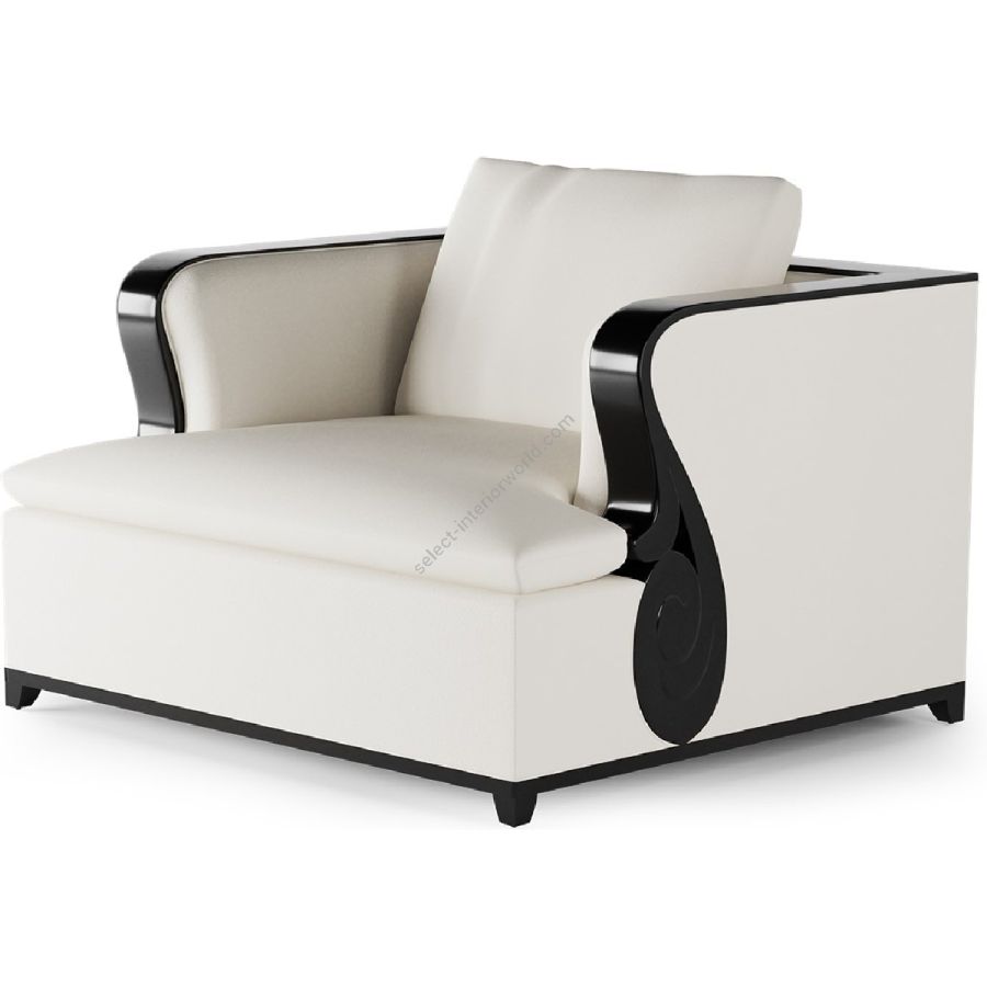 A fabulously chic lounge chair, featuring scroll arms carved into its solid mahogany frame.