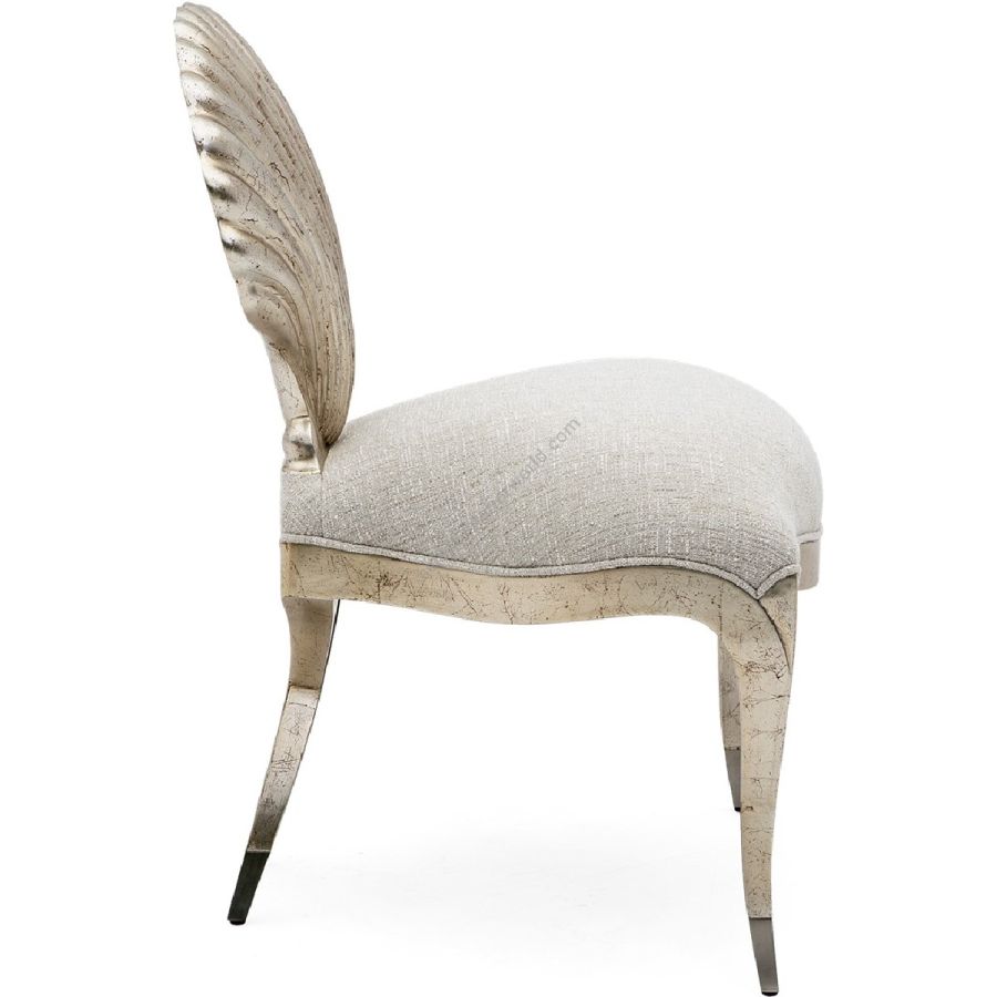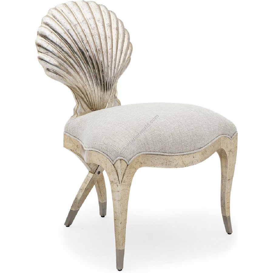 With a beauty worth of Venus herself, this metal finish tipped legs and shell-backed Chris-Cross boudoir chair is the ultimate accent piece for a classic interior.
