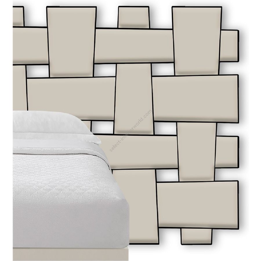 With a dramatic woven pattern featuring interlocking upholstered panels mounted in wooden frames, this spectacular bed is inspired by the mirror created by Christopher Guy for the Chanel No.5 commercial.