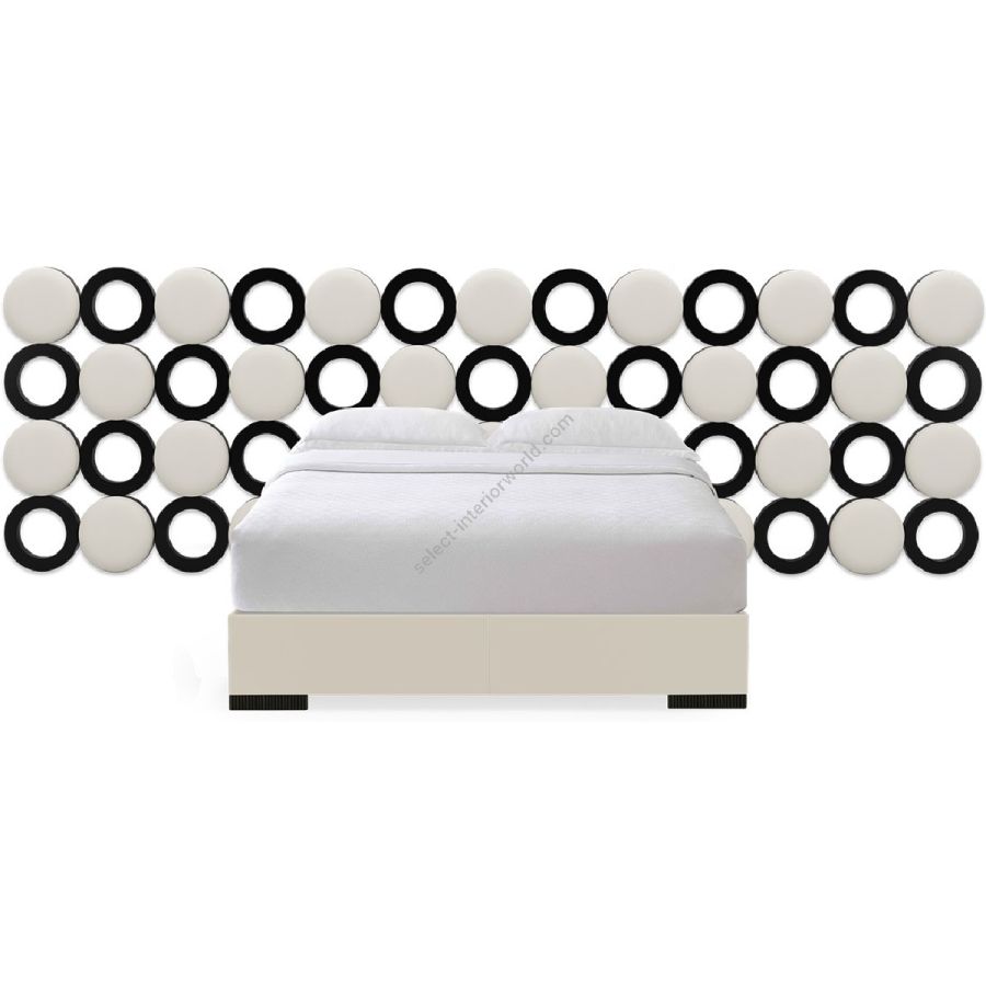 Inspiriert von den Kettenhemd-Minikleidern der Swinging Sixties besticht dieses moderne Bettset durch ein Kopfteil mit gepolsterten Scheiben und Ringen, die abwechselnd in einem atemberaubenden geometrischen Muster angeordnet sind. Auch als Einzelkopfteil erhältlich (20-0711).