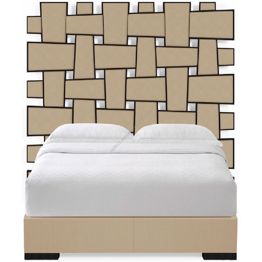 With a dramatic woven pattern featuring interlocking upholstered panels mounted in wooden frames, this spectacular bed is inspired by the mirror created by Christopher Guy for the Chanel No.5 commercial.