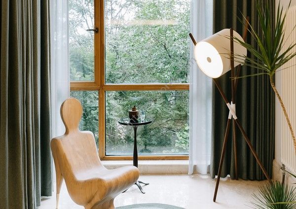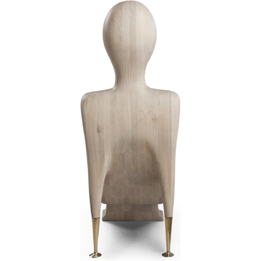 A natural wood figure transformed into a surprisingly comfortable modernist accent chair, beautifully hand carved with subtle brass arms. Art has never been this practical.
