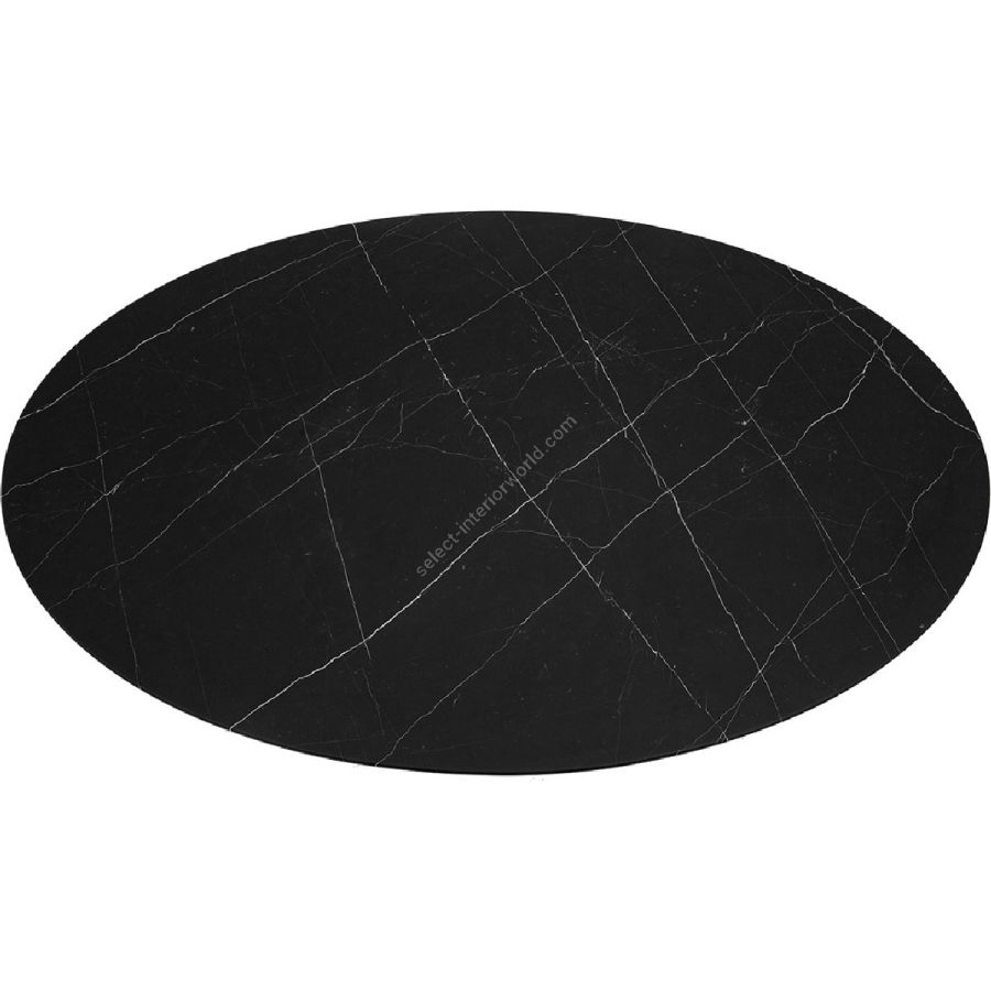 A contemporary take on the classic 1960s tripod tables inspired by the lunar landings, this striking coffee table features a base of four legs rather than three, hand crafted from solid wood, and crowned with an oval night sky top made of Nero Marquina marble.