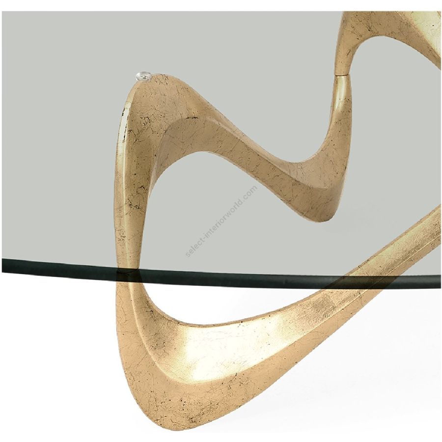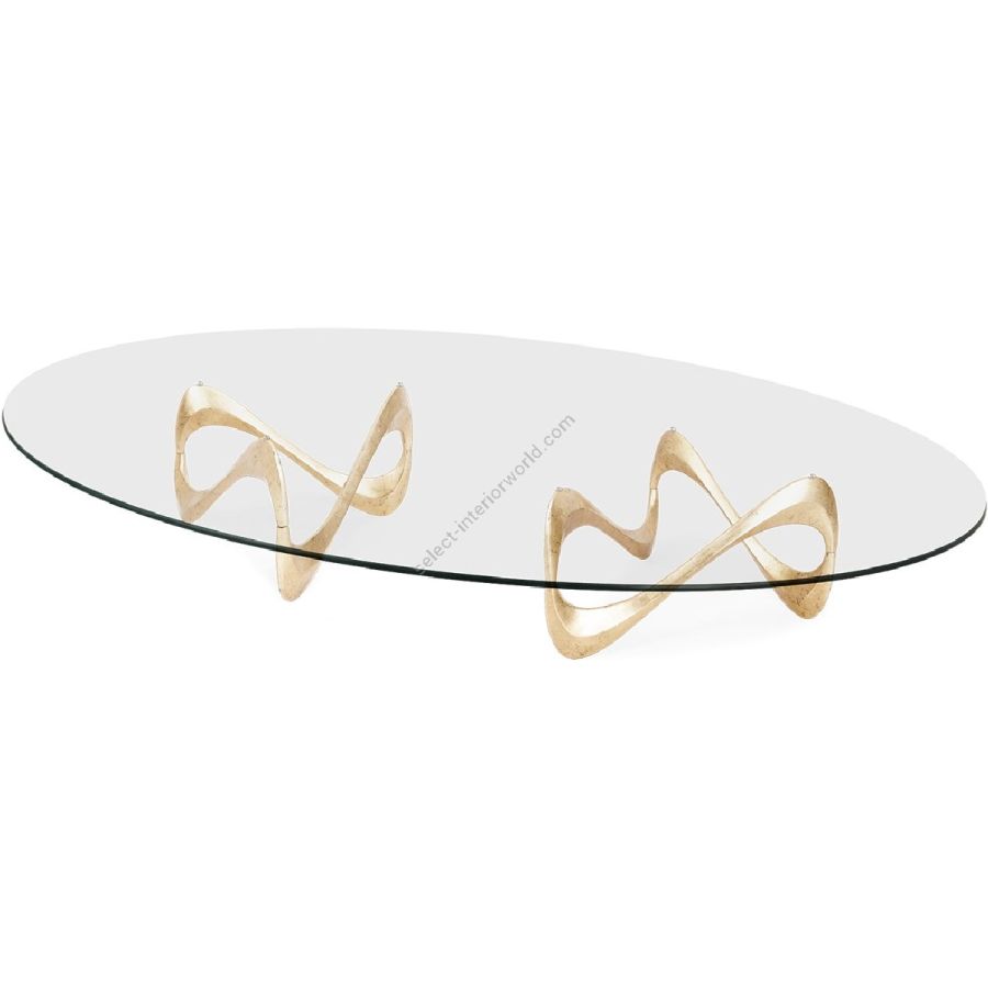 The alluring curves of the double supports of this dramatic coffee table are complemented by a beautifully simple transparent oval tempered glass top.