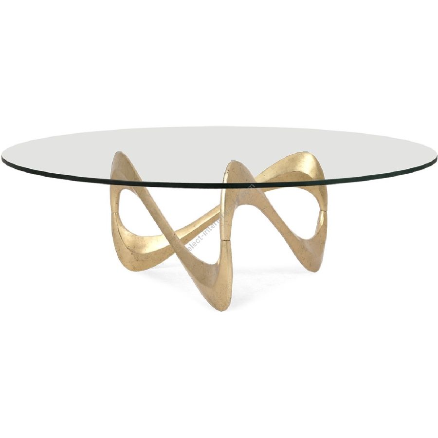 Vibrant and contemporary, with alluring curves and sensuous styling, the hand-cast aluminium base of this dramatic coffee table supports a clear tempered glass top.