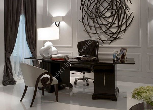 With its curved work surface and Christopher Guy signature Silk-cut on the top, through which laptop cables can be passed, this fabulous desk is equally at home in the study or the lounge.