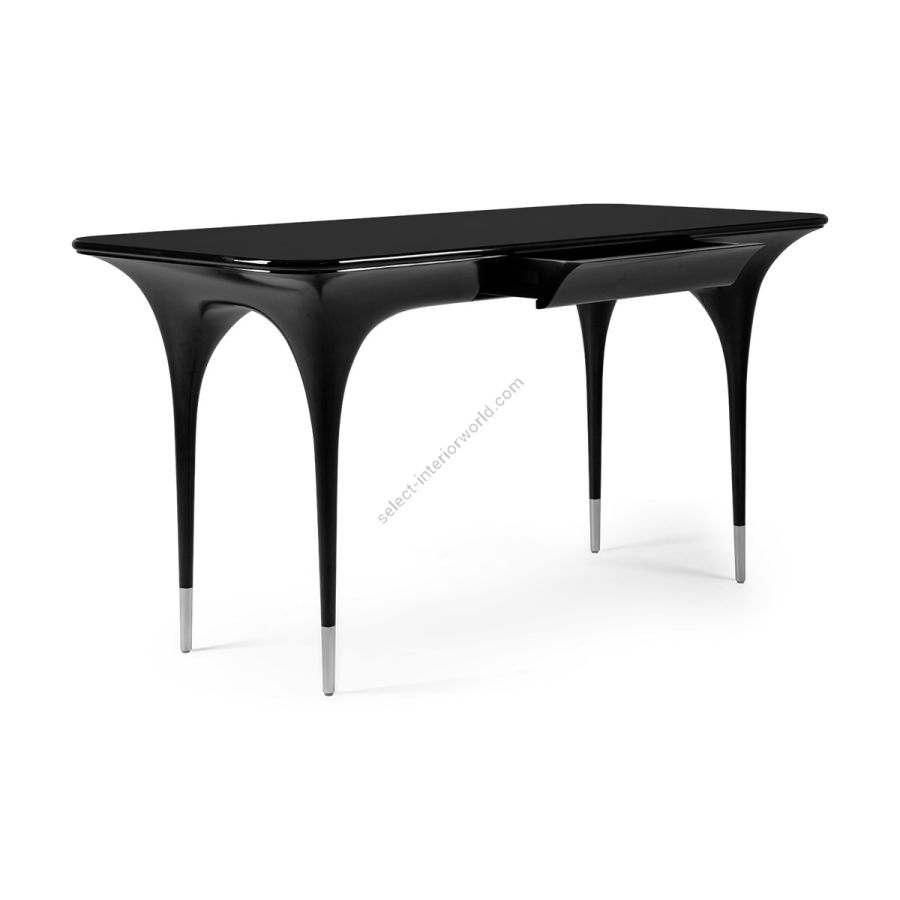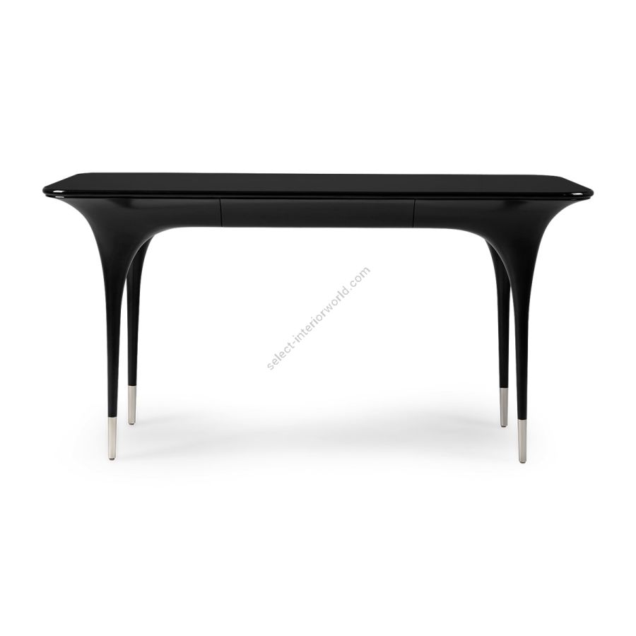 With the ultimate in elegance, this delightful desk is expertly hand carved with tall spindly brushed nickel finish tipped legs swooping into curves and a seamless tabletop with curved sides. A truly beautiful addition to any style of setting.