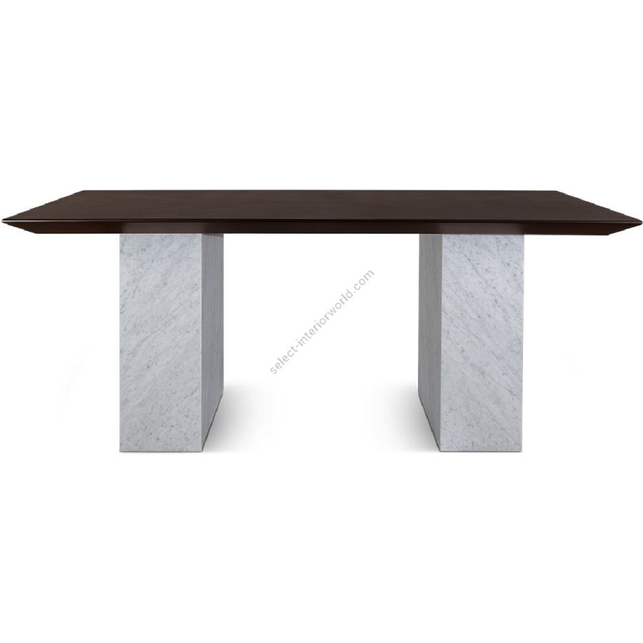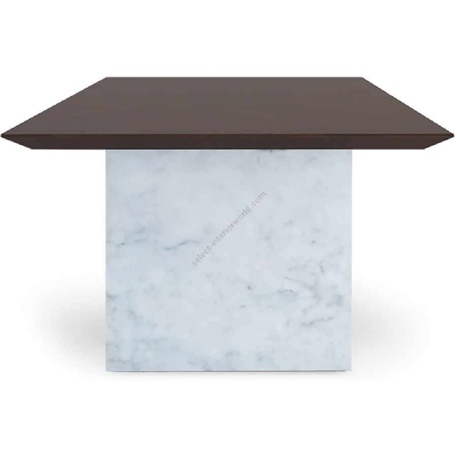 Bring elegance with edge to any dining setting. With smooth slabs of white Carrara marble as bases and a handmade rectangular wood top, this spectacular dining table is a real showstopper!