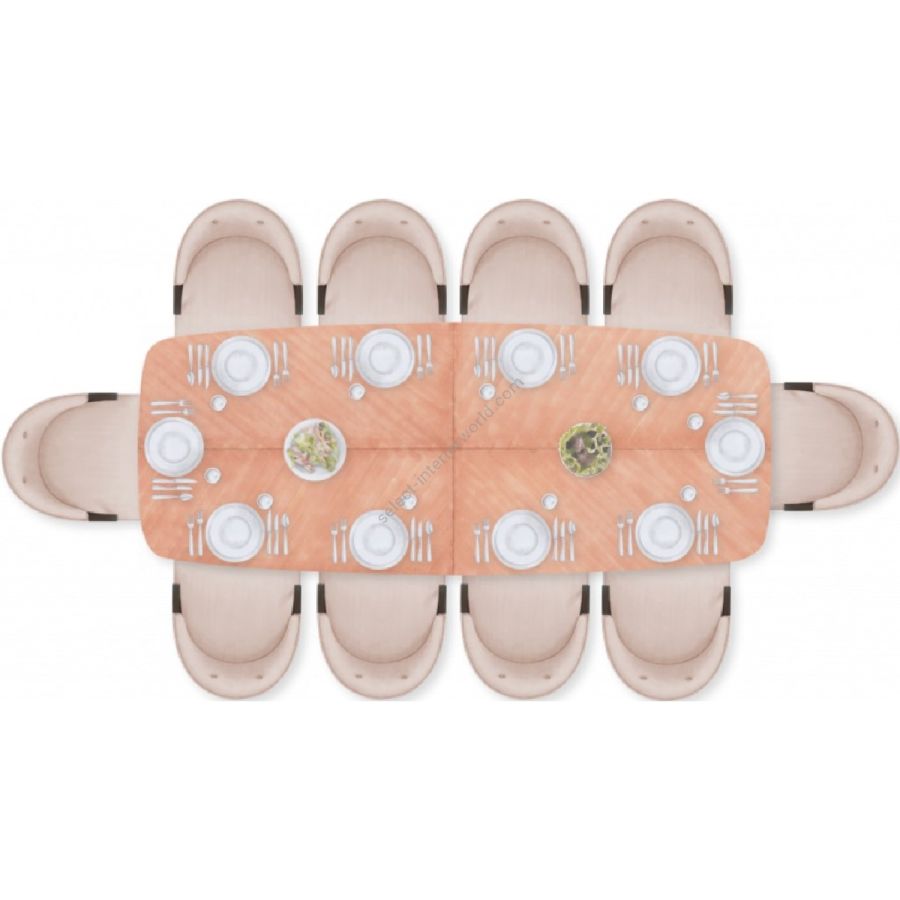 Certified Mahogany hardwood. Veneered Mahogany top. 8-10 Seater Table. Selection of remarkable finishes are available. For residential use only. Commercial use is classified as Special Order Design (SOD), and alternative materials may be required. Contact us for details.