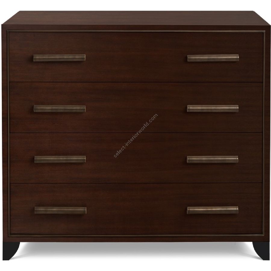 A rich, sublime chest of drawers, with an early 20th century modernist feel, with understated, wooden handles in aged brass finishing.